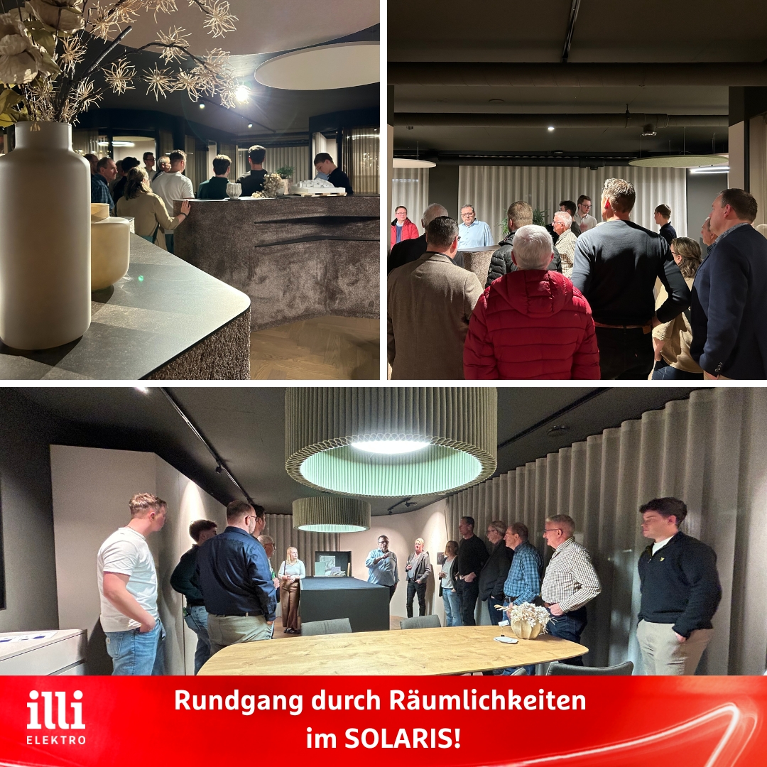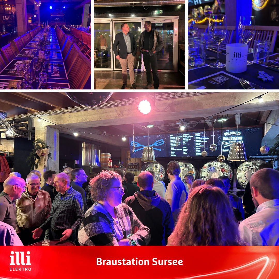 Die Elektro Illi AG traf sich am Freitag, 28.11.2025 zum traditionellen Weihnachtsessen, das in diesem Jahr in Sursee stattfand. Der Abend begann im Gebäude Solaris, wo das Unternehmen die Elektroinstallationen ausführen durfte. Zum Auftakt erhielten die Mitarbeitenden eine Führung durch die modernen und top ausgerüsteten Büroräumlichkeiten. Dabei bot sich die besondere Gelegenheit, die eigenen Installationen aus nächster Nähe zu betrachten und den Blick auf fertiggestellte Arbeitsresultate zu richten. Der anschliessende Apéro bot Zeit für persönliche Gespräche und einen ungezwungenen Austausch.